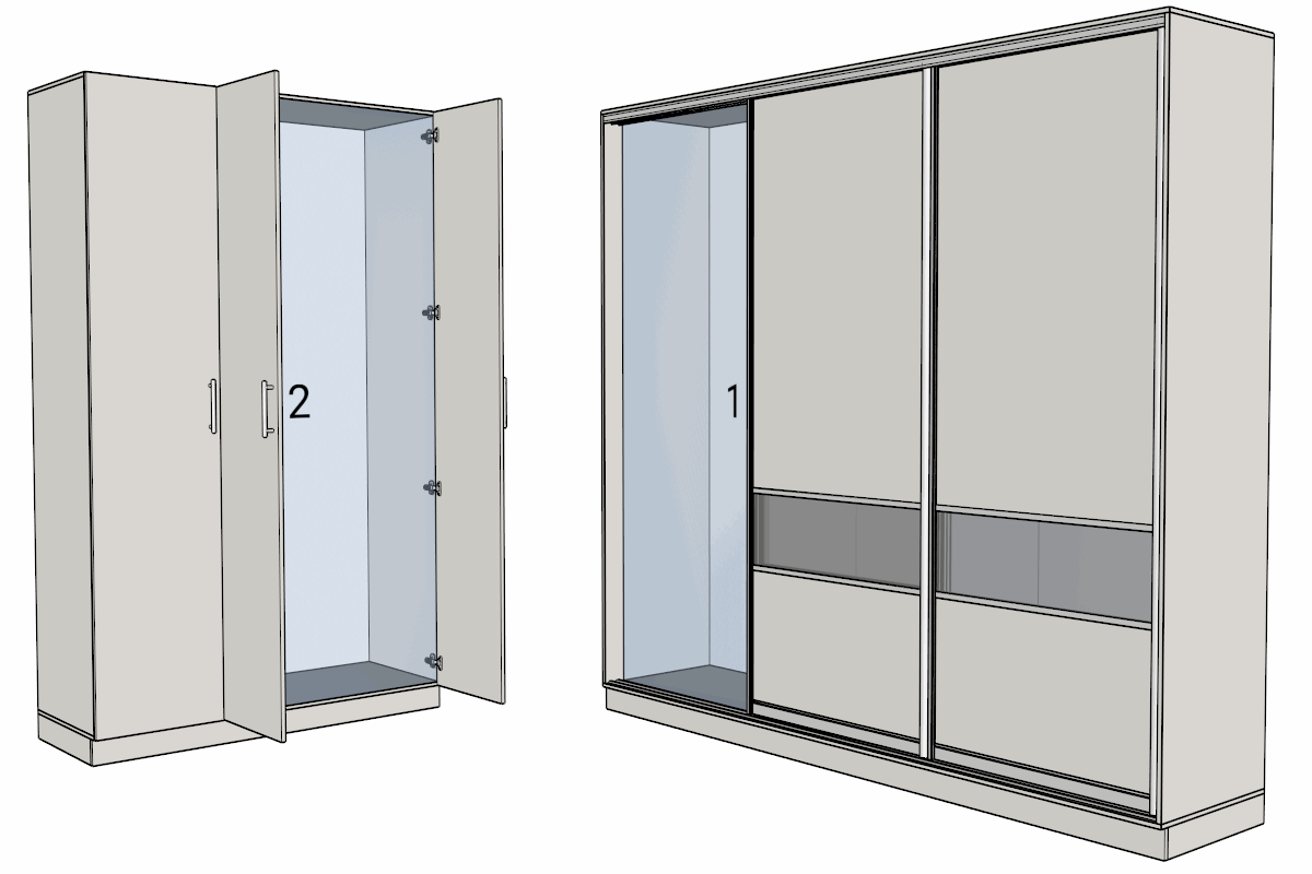 Секции универсальны. Это значит, что одни и те же секции можно использовать как в шкафах-купе, так и в распашных шкафах. В будущем, когда появятся новые типы корпусной мебели, мы сделаем так, чтобы и в ней можно было использовать эти секции.
