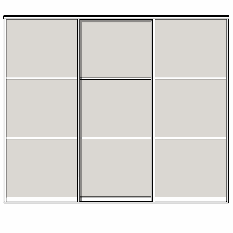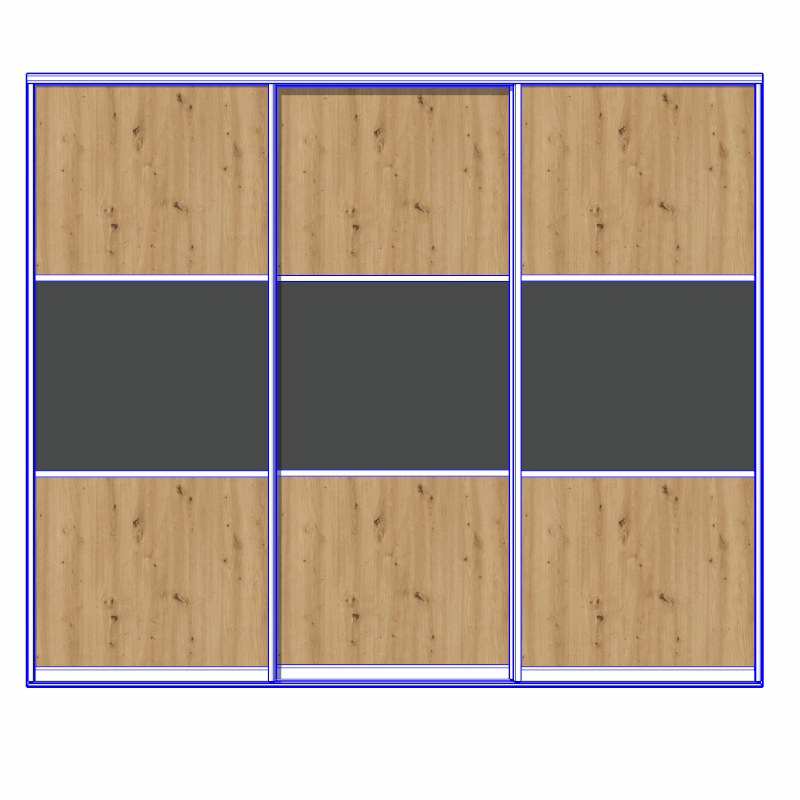 Теперь, кроме пяти универсальных модулей в каждом из видов профилей (сейчас доступны С и Н-профиля), с возможностью добавления до 9 вставок, появились ещё и более простые модули, которые могут содержать от одной до трёх вставок. Это сделано для облегчения Ваших проектов. Зачем всегда использовать тяжёлый универсальный модуль, если не требуется столько вставок в дверях? Лучше взять модуль с нужным количеством вставок. Так и проект будет легче и анимация дверей плавнее. На анимации ниже - модуль с тремя дверьми, каждая из которых имеет по 3 вставки: